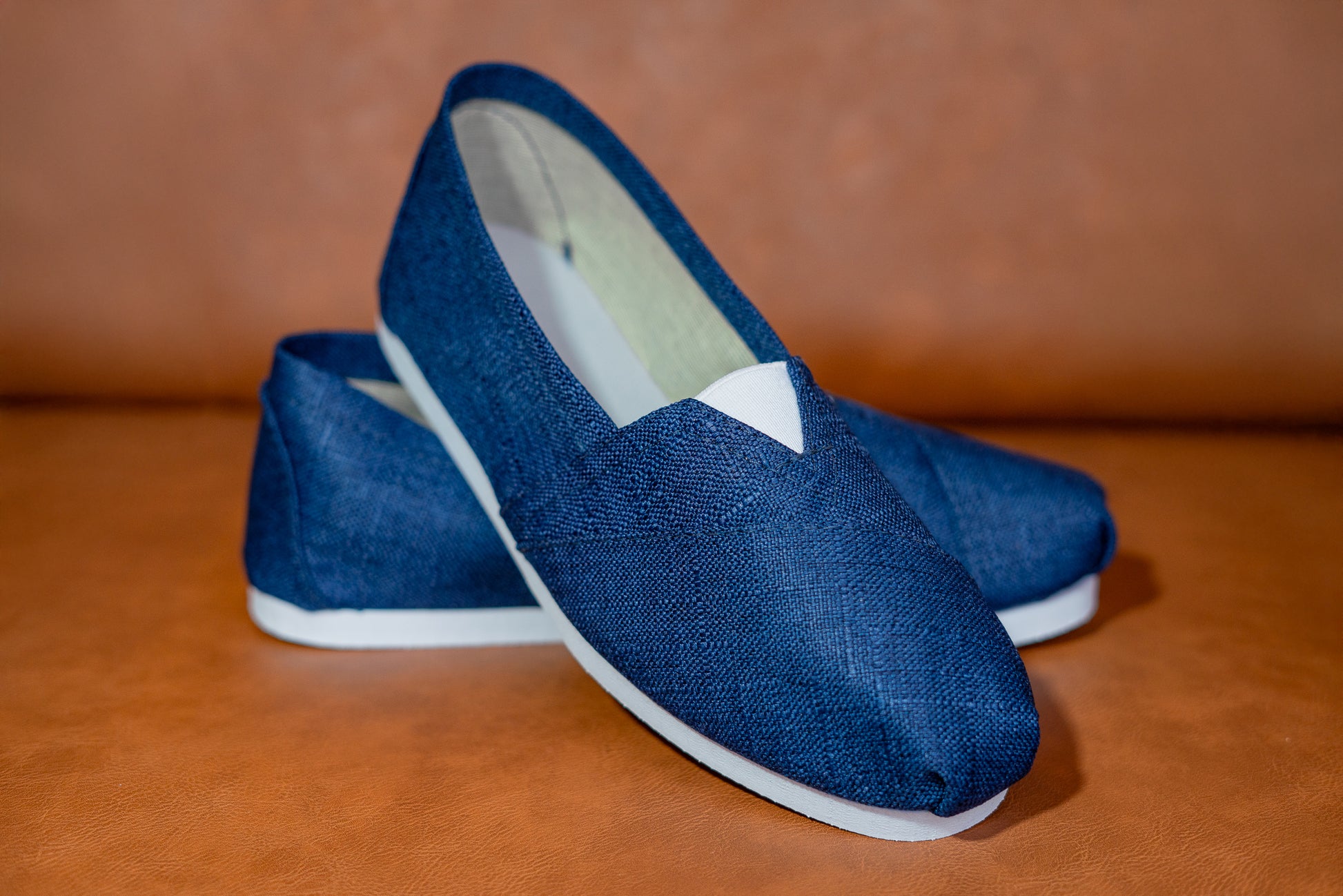 Alpargata de solado de borracha e tecido de linho.